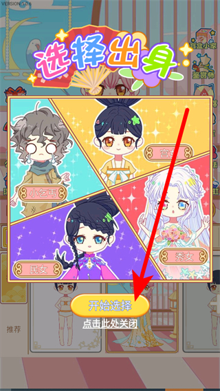 3、進入游戲,點擊開始選擇,挑選小乞丐、宮女等出身,不同出身會開啟不同劇情與裝扮方向,為后續(xù)游戲奠定基礎。