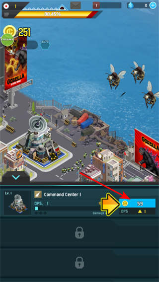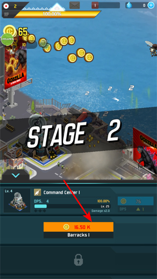 3、升級(jí)建筑單位,消耗金幣升級(jí)指揮中心,提升其DPS每秒傷害和防御能力,增強(qiáng)對(duì)怪獸的打擊效果。