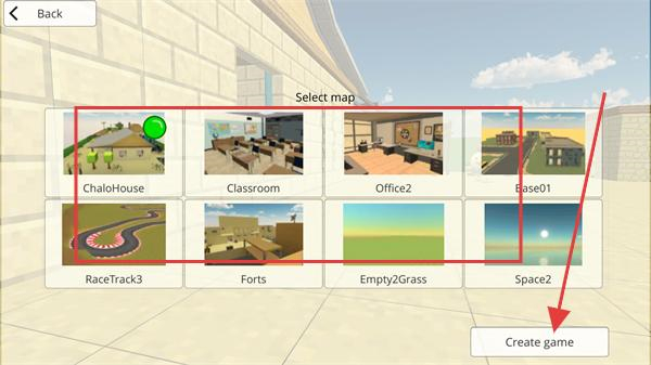 2、在地圖選擇界面,挑選心儀地圖后點(diǎn)擊右下角創(chuàng)建游戲。
