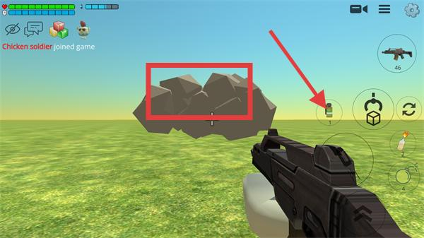 4、點(diǎn)擊右側(cè)的技能,可以丟出物品,模糊敵人的視野來隱藏位置。