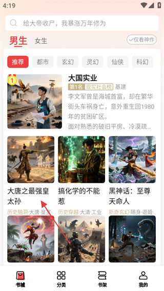 1、進(jìn)入叮當(dāng)牛小說,選擇感興趣的書籍,如大唐之最強(qiáng)皇太孫,進(jìn)入書籍詳情頁。