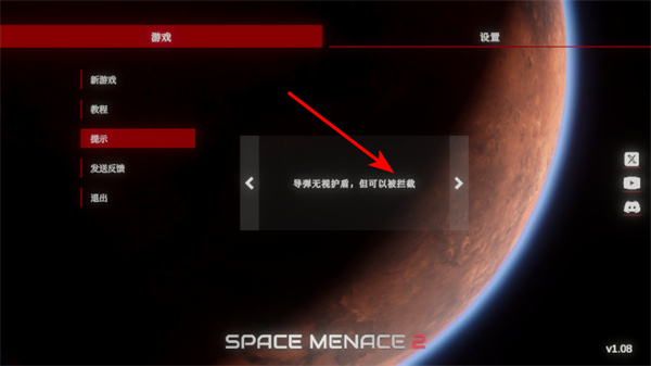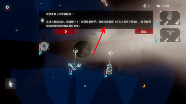 1、了解游戲機制,在提示界面中,了解導彈無視護盾,但可以被攔截的游戲機制,為策略布局做準備。