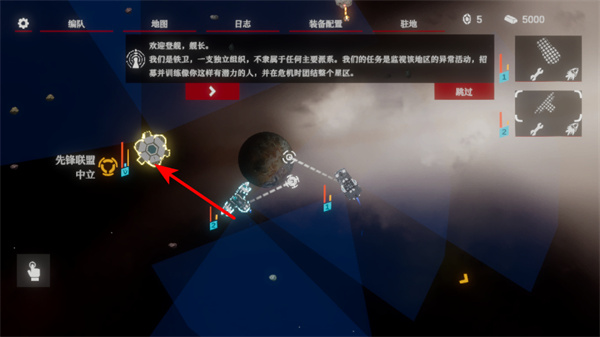 4、接觸太空勢力,與先鋒聯(lián)盟等太空勢力進行交互,可能獲取任務、資源或建立外交關(guān)系,推進進程。