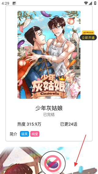 3、在少年灰姑娘詳情頁,下滑即可閱讀該漫畫全部內(nèi)容。