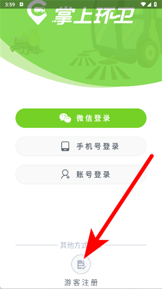 2、進入登錄界面后,點擊底部游客注冊選項。