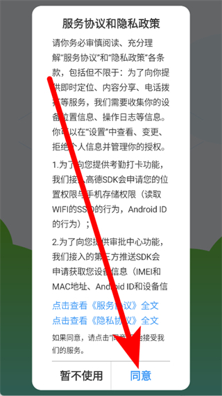 1、打開掌上環(huán)衛(wèi),在彈出的服務協(xié)議和隱私政策窗口中點擊同意。