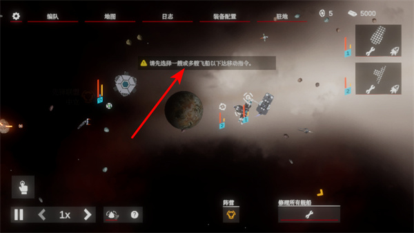 1、進行裝備維修,點擊修理所有艦船按鈕,對受損的艦船進行維修,恢復其戰(zhàn)斗和航行能力,保障太空任務的持續(xù)進行。