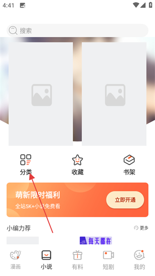 2、在小說頁面,點擊分類,進入分類選擇頁面。