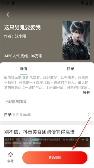 4、在這只男鬼要娶我詳情頁,點擊開始閱讀,開始閱讀小說內(nèi)容。