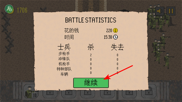 2、查看戰(zhàn)斗統(tǒng)計,在戰(zhàn)斗統(tǒng)計界面,查看數(shù)據(jù),總結(jié)戰(zhàn)斗情況,為后續(xù)策略調(diào)整提供依據(jù),點擊繼續(xù)按鈕推進游戲進程。