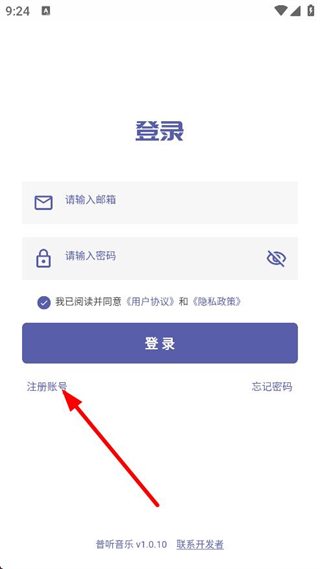 1、在普聽(tīng)音樂(lè)APP啟動(dòng)頁(yè),點(diǎn)擊登錄/注冊(cè),進(jìn)入登錄頁(yè)面。
