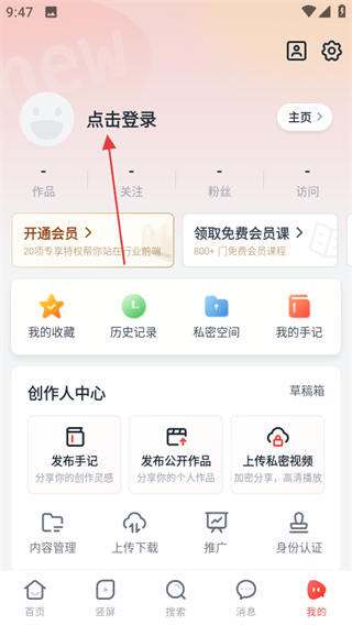 2、在個人頁面,點擊點擊登錄,進入登錄操作頁面。