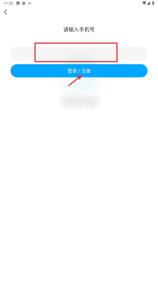4、在手機號輸入界面,輸入手機號后點擊登錄/注冊按鈕,完成賬號登錄操作。