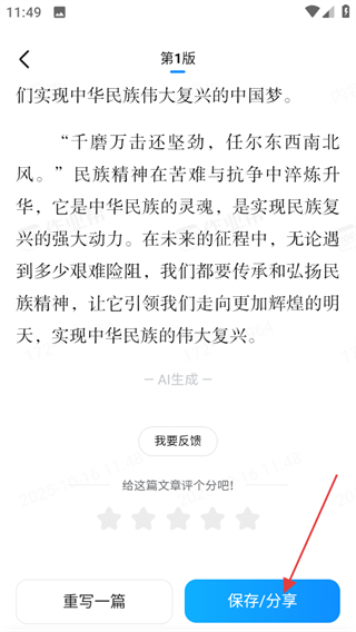4、作文生成后,可點(diǎn)擊保存,對(duì)生成的作文進(jìn)行保存操作。