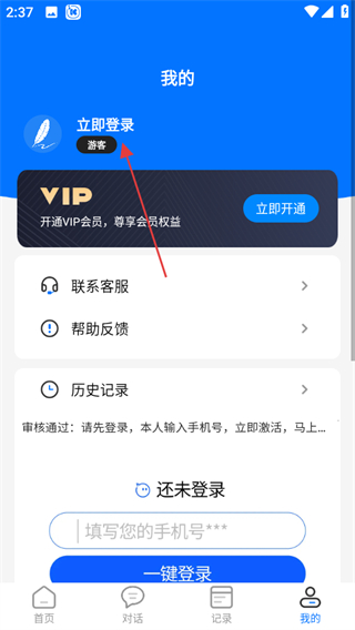 2、在個(gè)人頁(yè)面,點(diǎn)擊立即登錄,進(jìn)入登錄注冊(cè)選擇頁(yè)面。