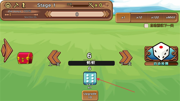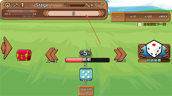 2、點(diǎn)擊勇氣骰子,根據(jù)出現(xiàn)的點(diǎn)數(shù),對“螞蟻”敵人造成相應(yīng)數(shù)值的傷害。
