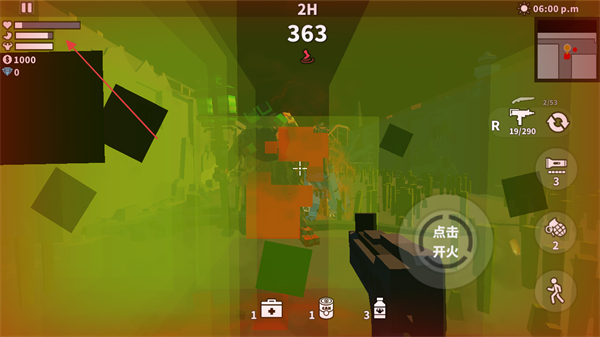 1、進(jìn)入游戲,留意左上角生命值、金錢等狀態(tài),滑動屏幕調(diào)整視角,發(fā)現(xiàn)怪物后,點(diǎn)擊右側(cè)點(diǎn)擊開火按鈕射擊。
