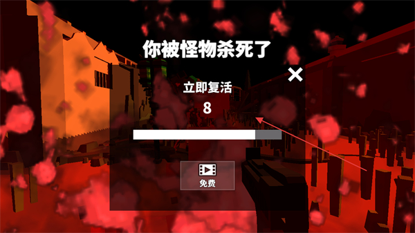 4、不幸被怪物擊殺后,可選擇消耗資源立即復(fù)活,或點(diǎn)擊免費(fèi)通過觀看廣告復(fù)活,重新投入戰(zhàn)斗。