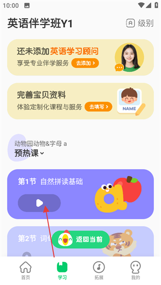 每節(jié)課程后搭配聽音匹配口語(yǔ)跟讀等練習(xí),通過即時(shí)反饋鞏固所學(xué),強(qiáng)化記憶效果,同時(shí)增強(qiáng)孩子學(xué)習(xí)成就感與自信心。
