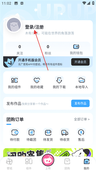 1、進(jìn)入upupoo,在首頁(yè)點(diǎn)擊底部我的,進(jìn)入個(gè)人頁(yè)面。