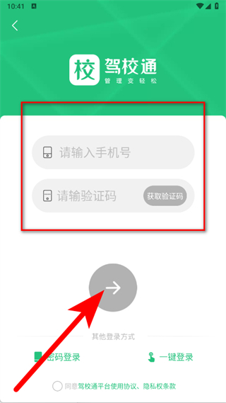 4、在登錄注冊界面,輸入手機(jī)號,點(diǎn)擊獲取驗(yàn)證碼,輸入驗(yàn)證碼后,點(diǎn)擊箭頭按鈕完成注冊。