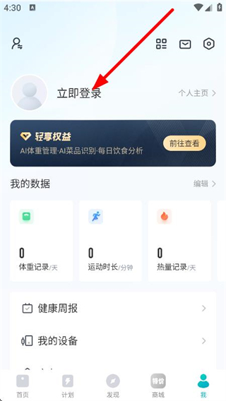 2、在個人頁面,點擊立即登錄,進(jìn)入登錄/注冊頁面。