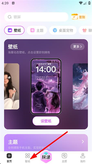 1、在壁紙秀秀的首頁,點擊底部的玩法,進入玩法頁面。