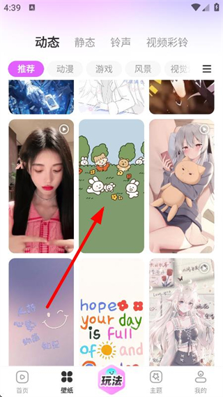 2、在玩法頁面,選擇喜歡的動態(tài)壁紙,進入該壁紙詳情頁面。