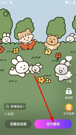 3、在壁紙詳情頁面,點擊設(shè)為壁紙,即可將該壁紙設(shè)置為手機壁紙。