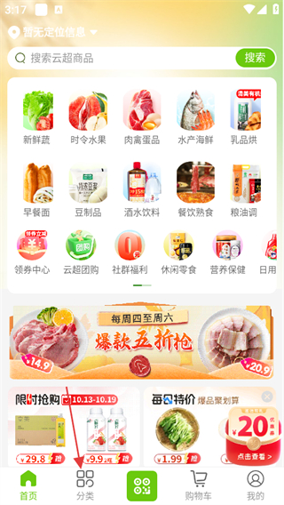 1、進入清美云超,在首頁點擊底部分類,進入分類頁面。