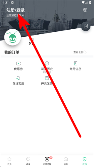 2、進(jìn)入我的頁面后,點(diǎn)擊左上角顯眼的注冊登錄選項(xiàng)。