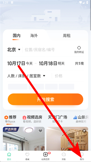 1、打開螞蟻短租,在首頁點(diǎn)擊底部導(dǎo)航欄最右側(cè)的我的。