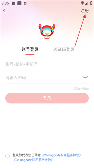 3、在登錄頁(yè)面,點(diǎn)擊右上角注冊(cè),進(jìn)入賬號(hào)注冊(cè)頁(yè)面。