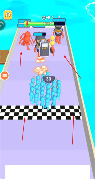 每道關(guān)卡都設(shè)有特殊機(jī)制,通過(guò)合理利用這些機(jī)制能增加己方小人數(shù)量,人數(shù)越多越容易打倒對(duì)手,機(jī)制設(shè)計(jì)多樣,讓每關(guān)的人數(shù)增長(zhǎng)過(guò)程都有不同體驗(yàn)。