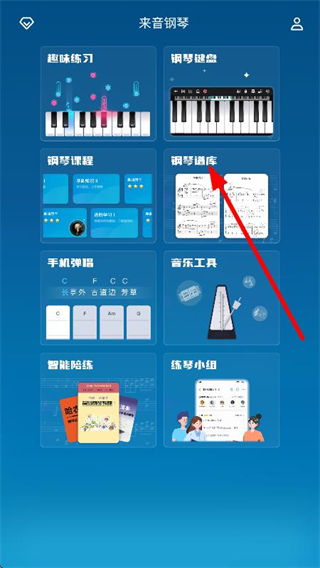 2、在來音鋼琴主頁面,點(diǎn)擊鋼琴譜庫,進(jìn)入鋼琴譜庫頁面。