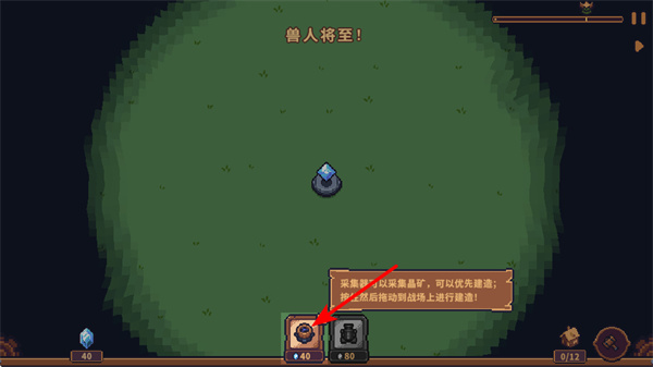 1、開啟戰(zhàn)斗流程,點(diǎn)擊開始戰(zhàn)斗按鈕,進(jìn)入戰(zhàn)斗場(chǎng)景,開始抵御獸人的攻擊,保護(hù)水晶。