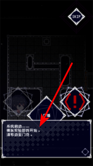 2、游戲中會有劇情類的文字提示,玩家需留意這些提示,了解實驗背景與后續(xù)安排,玩家可以移動至門口,明確下一個行動。