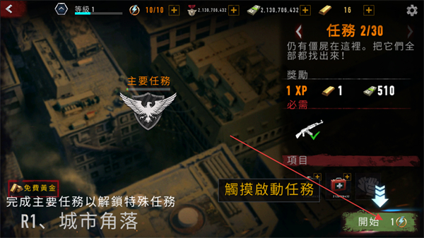 1、查看界面,了解主要任務(wù),點(diǎn)擊開始進(jìn)入任務(wù),注意任務(wù)進(jìn)度任務(wù)2/30。
