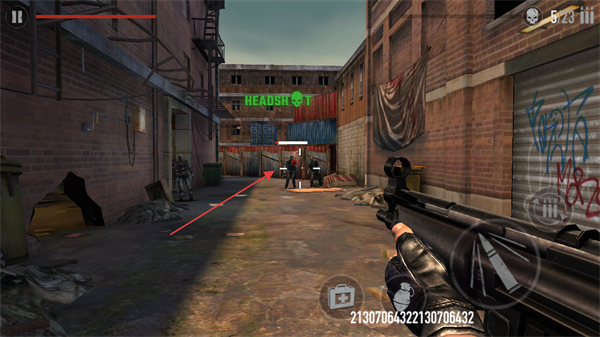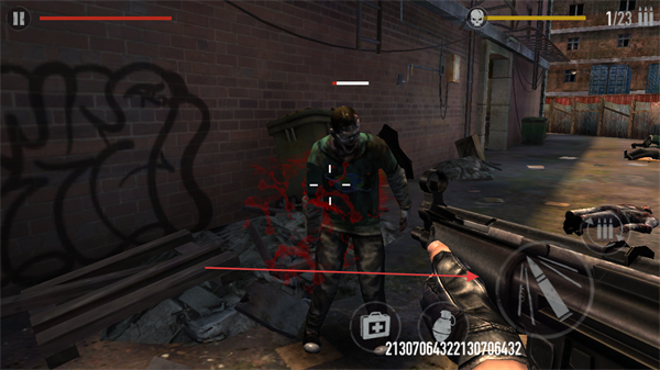 3、近距離遭遇僵尸,保持冷靜,持續(xù)射擊,留意自身生命值和子彈量。
