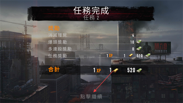 4、完成任務(wù)後,查看任務(wù)完成界面的獎勵,點(diǎn)擊點(diǎn)擊繼續(xù)開始下一個任務(wù)。