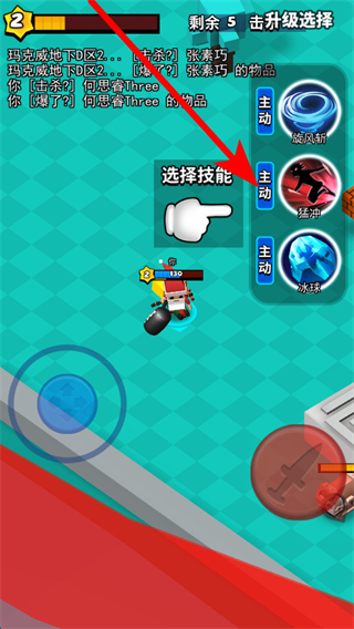 2、升級時會有技能選擇界面,里面有多種主動技能可供挑選,不同技能適配不同戰(zhàn)斗風(fēng)格,選擇契合的技能能增強(qiáng)角色戰(zhàn)力,助力取得更好成績。