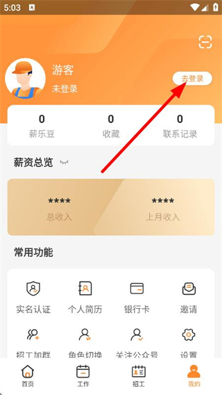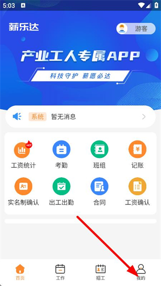 1、在薪樂(lè)達(dá)的首頁(yè),點(diǎn)擊右下角我的,進(jìn)入個(gè)人頁(yè)面。