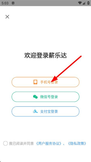 3、在登錄選擇頁(yè)面,點(diǎn)擊手機(jī)號(hào)登錄,進(jìn)入手機(jī)號(hào)登錄頁(yè)面。
