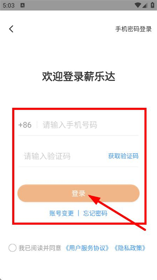 4、輸入手機(jī)號(hào)碼,獲取并輸入驗(yàn)證碼,點(diǎn)擊登錄,完成登錄操作。