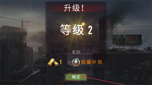 4、完成關(guān)卡任務(wù),達到升級條件后,出現(xiàn)升級!等級2提示,點擊確定領(lǐng)取獎勵,提升角色能力。