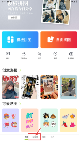 1、打開視頻制作類應(yīng)用,點(diǎn)擊底部做視頻選項(xiàng),進(jìn)入視頻制作功能頁(yè)面。