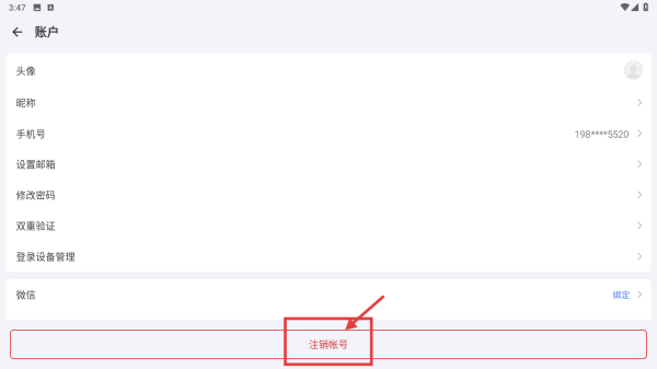 4、在賬戶詳情頁面,點擊注銷帳號選項,按提示完成賬號注銷操作。