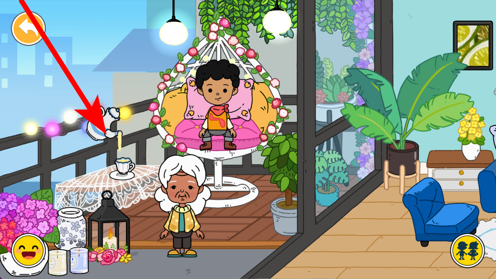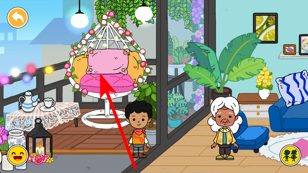 3、在場(chǎng)景中,可點(diǎn)擊如吊籃這類物品,角色會(huì)與之產(chǎn)生互動(dòng),像小人會(huì)坐到吊籃上,通過(guò)點(diǎn)擊不同物品,觸發(fā)多樣的互動(dòng)場(chǎng)景,增添游玩的趣味性。