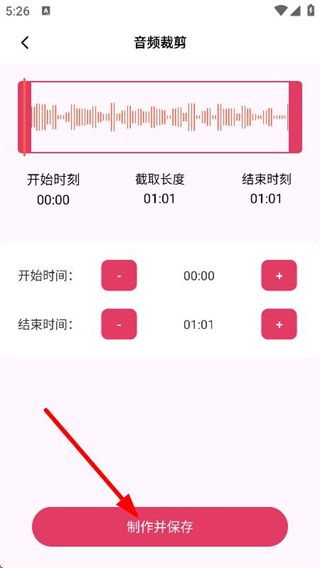 4、設(shè)置好開始時(shí)間和結(jié)束時(shí)間后,點(diǎn)擊制作并保存,完成音頻裁剪操作。