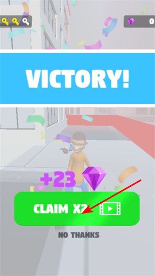 2、領(lǐng)取比賽獎勵, 比賽勝利后,點擊CLAIM X2按鈕,觀看視頻獲取雙倍鉆石獎勵,積累游戲資源。